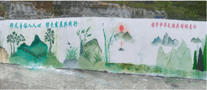 团队创新文明实践形式,举办“移风易俗入人心”宣讲会,通过案例讲解、知识竞答让文明理念深入人心;创作5幅主题墙绘,将“美丽乡村”“民族团结”等主题融入艺术创作;组织红歌会演,与村民同唱《没有共产党就没有新中国》等经典曲目,激发奋进力量,为构建文明和谐的乡村氛围凝聚共识。