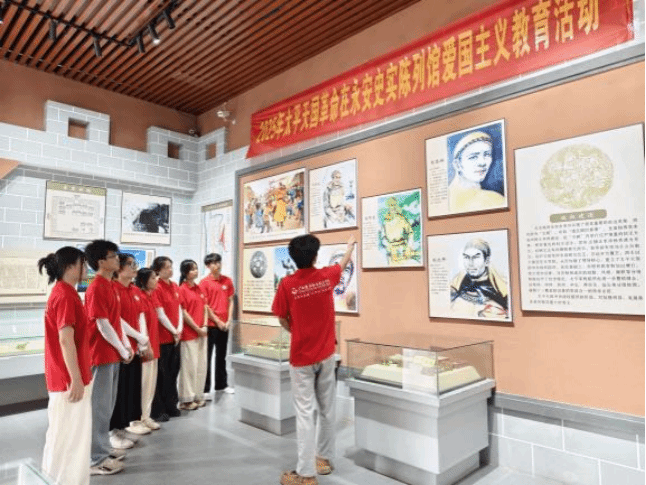 活动期间还实践团开展了庄重而深刻的红色教育实践活动。在太平天国开国封王地,实践团成员们怀着崇敬的心情参观了历史陈列馆和古建筑遗址。通过讲解员的生动讲述,大家深入了解了太平天国运动兴起的历史背景、发展过程及其深远影响。一幅幅泛黄的历史图片、一件件珍贵的文物实物,仿佛将大家带回了那个风云激荡的年代。成员们认真聆听,不时驻足凝视,深刻感悟先辈们反抗压迫、追求变革的斗争精神,体会历史的厚重与民族的坚韧。