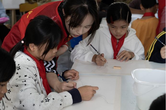 在都安瑶族自治县的乡间田野,学生党员们将课堂所学转化为乡村实践行动。他们手持画笔,在村落墙面上创作以乡村振兴、乡风文明等为主题的墙绘作品,让原本普通的墙面成为传播正能量的文化阵地;他们走进乡村小学,开展“大手拉小手”美育教育活动,为孩子们传授绘画技巧;他们深入田间地头,实地勘测、收集数据,用专业学识为乡村规划建设提供技术支持,在服务乡村振兴中展现新时代青年的责任担当。