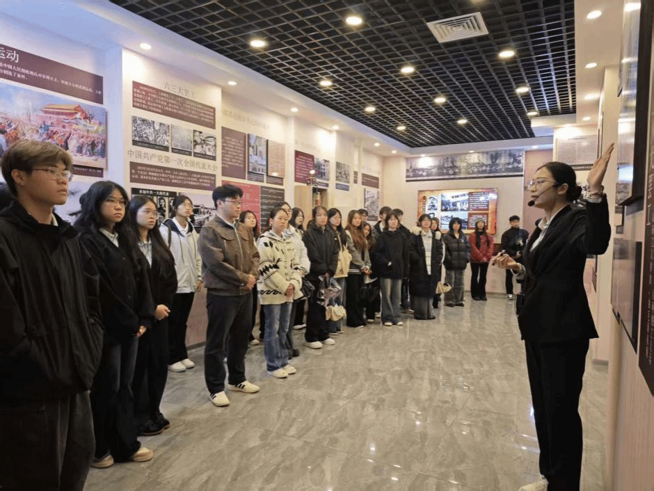 以史为鉴,筑牢信仰之基。活动在庄严的氛围中拉开序幕。全体成员首先参观了红色工运教育体验馆一楼的工人运动发展历程展馆。展馆内陈列的历史图片、实物与文献,系统再现了中国工人阶级在党的领导下从苦难走向觉醒、从抗争走向胜利的壮阔史诗。师生们认真聆听讲解,不时驻足沉思,深刻感悟到工人阶级坚定的革命意志与伟大的奉献精神,完成了一次深刻的“德育”洗礼。