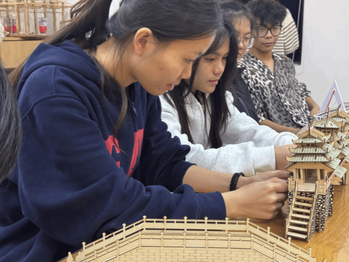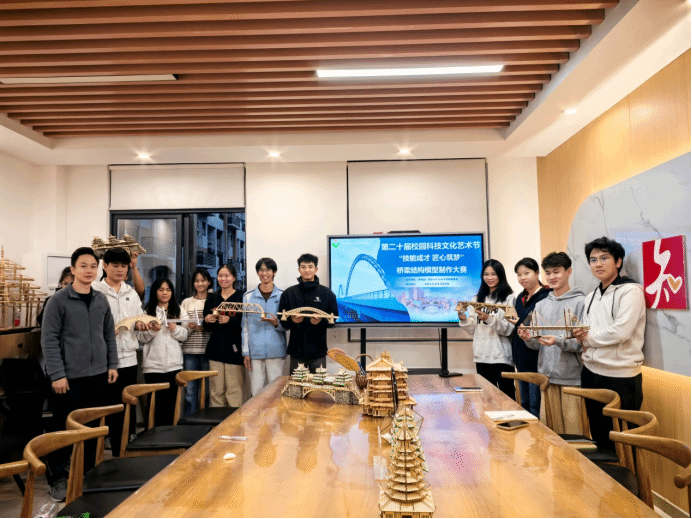 比赛期间,指导老师全程悉心指导,不仅深入讲解结构设计要点与制作注意事项,还对各队伍的模型作品进行细致点评,将专业知识融入实践指导,为学生们带来一场别开生面的专业课堂,现场学习氛围热烈浓厚。“通过参与比赛,我对结构力学有了更深刻的理解,这种理论与实践结合的学习方式让我收获颇丰!”一位参赛学生兴奋地分享道。