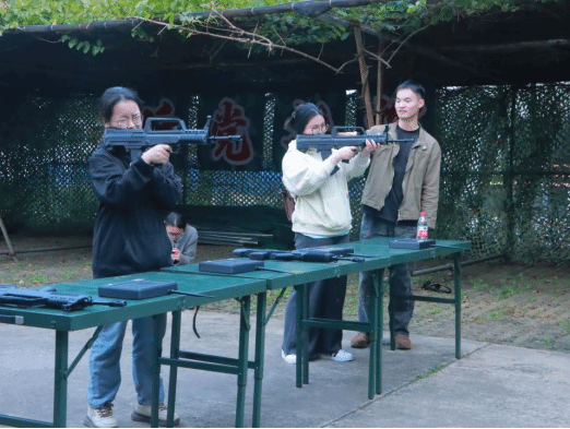 活动中,8名学院退役士兵担任教官,为师生详细讲解了步枪激光模拟射击、手枪快速反应射击等项目的操作规范、战术要领与安全知识,并进行标准动作示范。柏挺副校长、侯文淑书记亲身参与射击体验,与师生共同投入紧张有序的实战化训练。从据枪瞄准到精准击发,现场氛围紧张热烈,师生在实践中亲身体验了国防技能的严谨与实战要求。