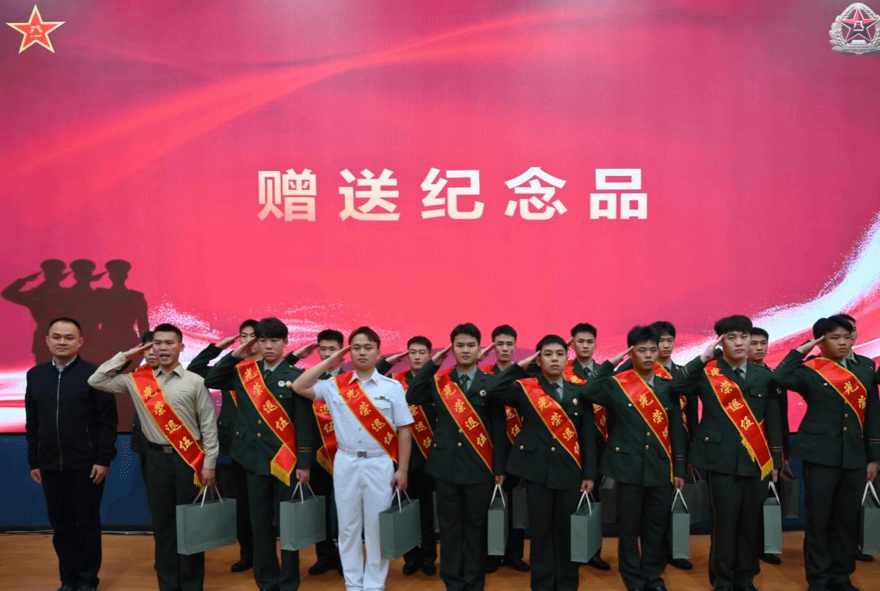 仪式上,二十名退役复学学生代表上台领取了学校准备的纪念品。随后,全场齐声高唱《中国人民解放军军歌》,欢迎仪式在嘹亮的歌声中圆满结束。