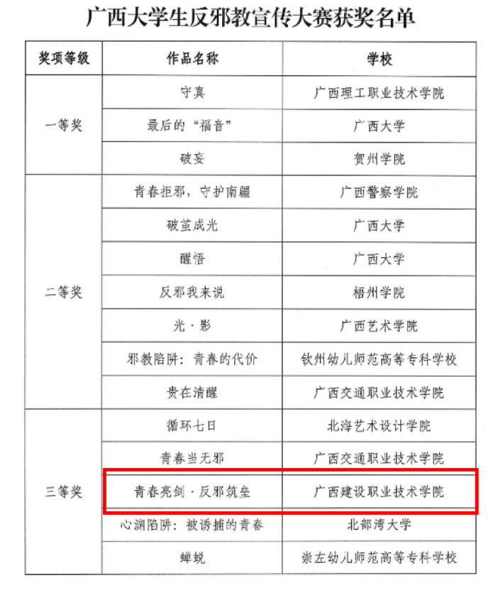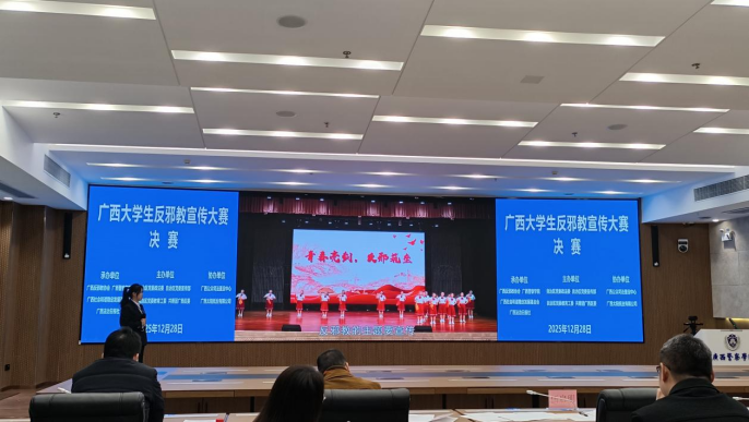 近日,由自治区党委政法委、自治区党委宣传部、自治区党委教育工委、共青团广西区委联合主办的广西大学生反邪教宣传大赛决赛圆满落幕。伟德国际官网党委学生工作部选送的原创音乐快板作品《青春亮剑·反邪助垒》荣获大赛三等奖。