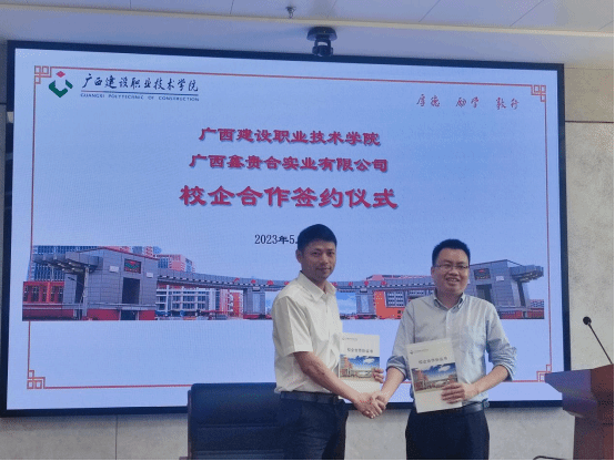 会上还就校企共建“绿色低碳型高性能混凝土协同创新中心”事宜作了进一步交流,并签订了校企合作协议。广西鑫贵合实业有限公司为伟德国际官网专任教师谢小利博士颁发了“广西鑫贵合实业有限公司重点课题研发专家”聘书,校企双方为“绿色低碳型高性能混凝土协同创新中心”签约并揭牌,为后续的进一步合作奠定了基础。