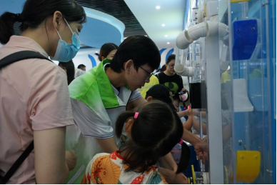 “创智联”志愿者在科普厅为小朋友开展净水小常识游戏