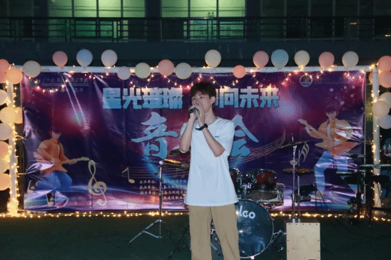 音乐会在学校龙狮协会舞狮们铿锵有力地表演和乐队振奋人心的奏唱中拉开帷幕,在这场师生共襄的音乐盛宴中,《倔强》《玫瑰少年》《父亲的散文诗》《后来》等一首首宛转悠扬且娓娓道来的歌曲、一个个闪动挥舞的星光荧光棒、一阵阵欢呼与呐喊、一次次激动人心的互动环节和师生大合唱,渐渐将音乐会推向高潮。整场音乐会洋溢着如火的青春热情,久久不能散去。同学们手中的荧光棒所汇聚成的光犹如漫天繁星,照亮着每一个人。此夜天空虽无星,然心中有“星”。