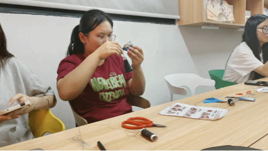 活动中,同学们领取了香囊包进行手工缝制,他们一针一线地将彩色绸缎缝制起来,将香料填入其中,最后缝上珠串,且配有丝线制作的流苏,大家绣出来的香囊不仅花样繁多,观赏性高,佩在身上香气扑鼻,还寓意着健康平安,幸福祥和。胡红伟老师向同学们讲解了龙舟的由来、发展以及文化内涵等知识。同学们利用原材料,将原本零散的构件组装起来,动手制作完成了精美的手工龙舟。最后,参与活动的同学们一同合影留念。