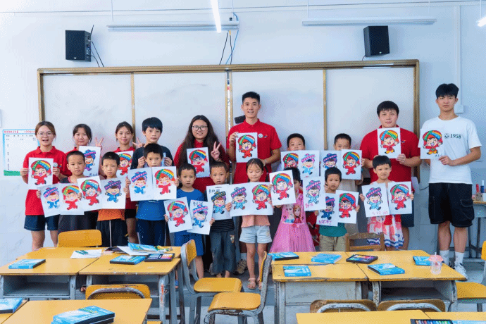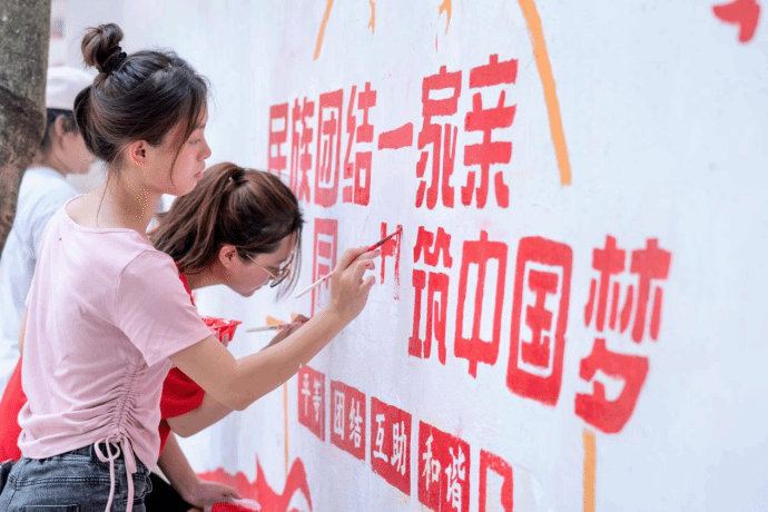 改善校园环境,沐浴美育之风。为切实帮助弄坤村海基希望小学改善校园文化环境,实践团开展墙绘活动,以饱满的热情用手中的画笔为校园添上一抹亮丽的色彩。期间,实践团在该小学开展了美育课程进校园活动,以课程为载体,传播中华民族文化,通过民族团结主题绘画课,培养小朋友们“民族团结一家亲”的意识。此外,实践团还在弄坤村海基希望小学举办了一场生动有趣的普通话推广活动,带领小朋友们感受标准普通话的魅力。