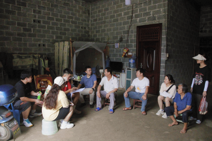 实践团首先深入当地,开展专题调研。实践团成员与弄坤村第一书记韩波等村委干部在党群服务中心举行座谈会,了解弄坤村的基本情况,为入户调研做好准备工作。在韩书记的带领下,成员们挨家挨户走访,开展民族团结专题调研,通过发放问卷、深入访谈等形式深入了解弄坤村村民们关于民族团结理念的认识,为民族团结进步创建提供理论依据。