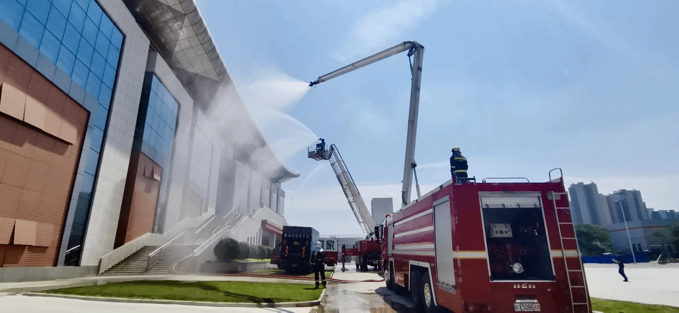 高新区消防救援大队派出指战员40余人,出动水罐、泡沫、云梯以及高喷消防车辆共4台,装载灭火剂约47吨,共计4个灭火编队的救援作战力量,逐一对联展暨论坛相关场所的建筑结构、内部消防设施数量配备及分布情况、消防通道和周边道路水源等基本情况进行全方位熟悉,并在体育馆进行了实地演练,有效检验了消防救援人员的协同作战水平,实际检测了体育馆相关消防设施的应用效能,真正做到“情况明”“底数清”,牢牢把握灭火救援的主动权。