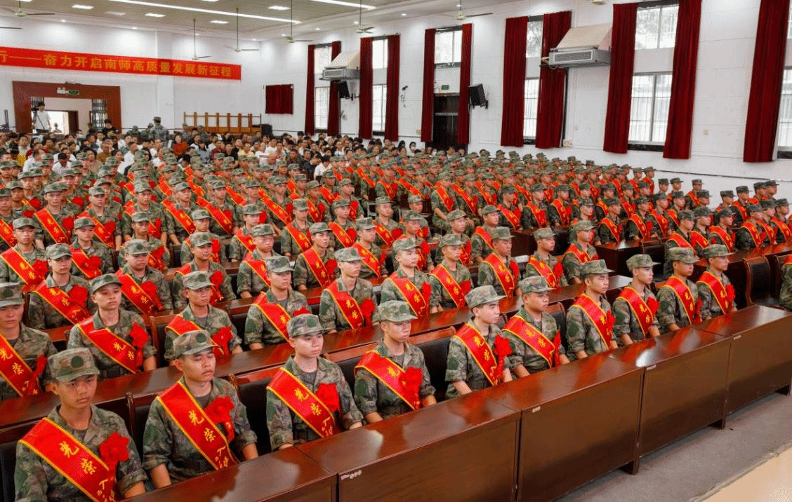 广西建院9月15日讯(党委武装部 文/刘晗蓓 图/西乡塘区武装部宣传科)9月14日下午,南宁市西乡塘区2023年秋季新兵入伍批准暨欢送大会在南宁师范大学举行,城区政府和人民武装部的主要领导出席会议。