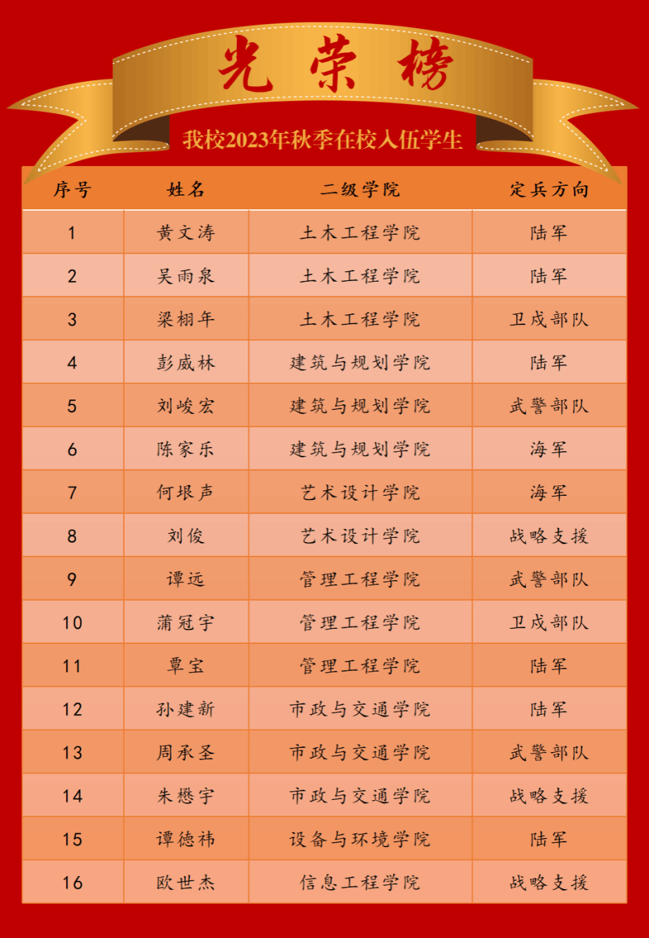 近年来,伟德国际官网始终坚持以高度的政治责任感和崇高的使命感,多措并举抓好征兵工作,为部队输送了一批批优秀青年。他们在部队尽心服役、默默奉献、保家卫国,为国防和军队建设贡献了建院力量。