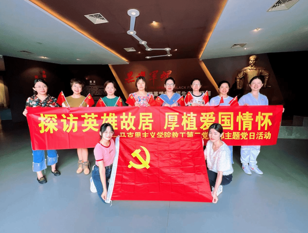 在三宣堂和刘永福纪念馆内,党员们仔细观摩着一幅幅图文、一件件实物和生动的情景模拟,深切感悟英雄人物以国为重、爱兵爱民、戒子重教、勤勉廉政的崇高品质。
