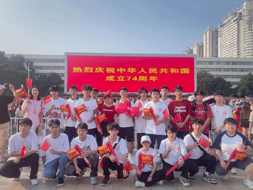 伟德国际1946源于英国10月1日讯(设备与环境学院 文/廖红媛 图/毛森森)为引导青年学子坚定理想信念,厚植家国情怀,10月1日,设备与环境学院组织师生赴广西南宁市民族广场观礼国庆升旗仪式,庆祝新中国成立74周年。