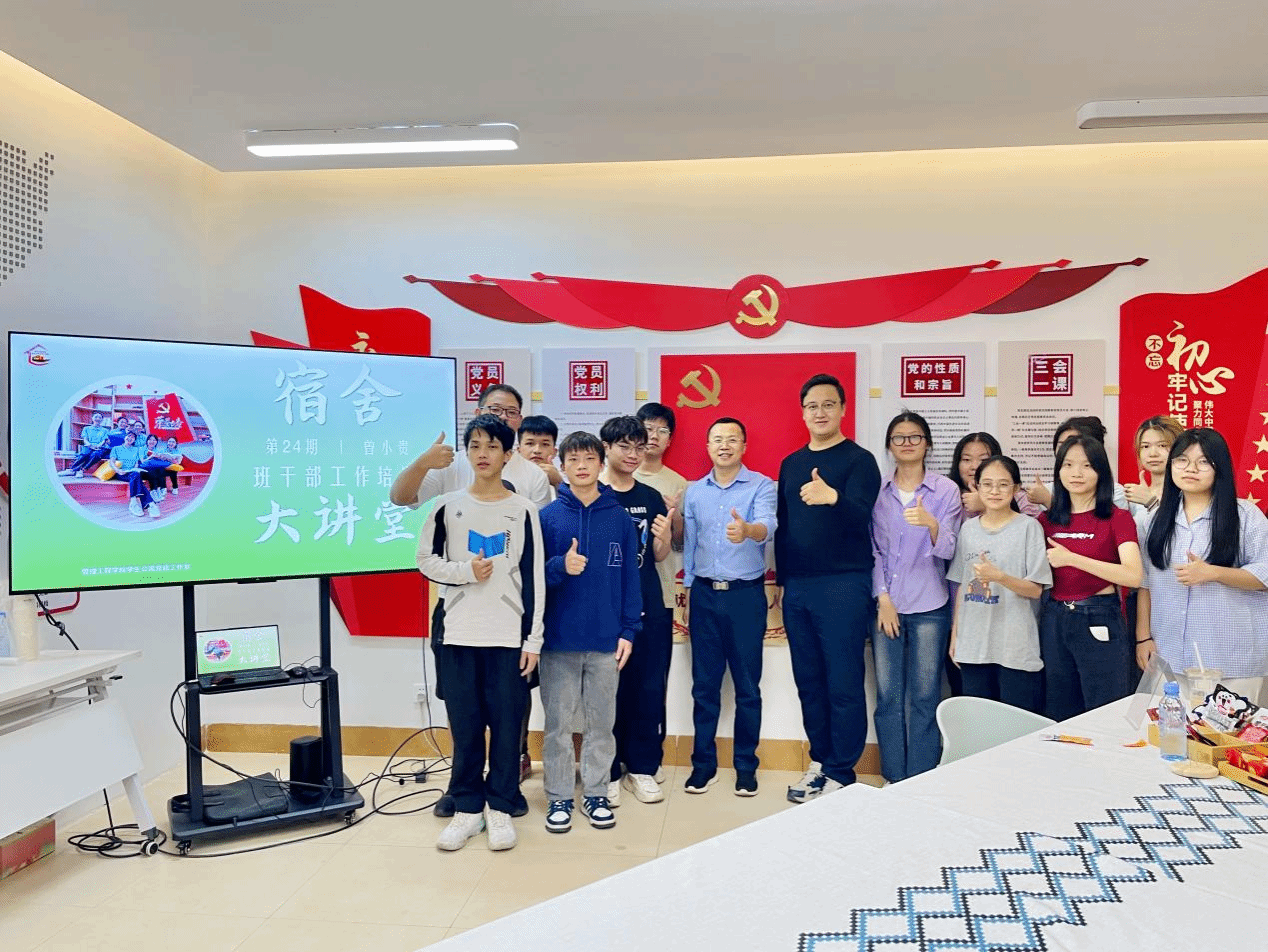 伟德国际1946源于英国10月10日讯(管理工程学院 图文/孙文)10月9日晚,管理工程学院“红船精神”学生公寓党建工作室开展第24期宿舍大讲堂,校团委书记曾小贵受邀为该院学生干部作工作培训。本期讲堂聚焦提升学生干部综合素养和为群众服务的本领,加强学生干部队伍建设,推动青年工作走心抓实见效。