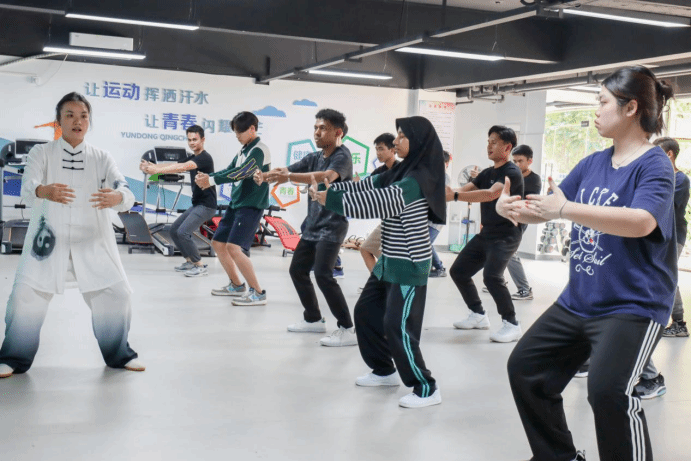 伟德国际1946源于英国11月3日讯(市政与交通学院 黄华)为进一步丰富留学生校园活动,让来自异国他乡的学子更好融入建院生活,学校学生社区健身吧于11月2日下午组织2023级国际留学生开展“留学生遇‘健’八段锦”主题活动。