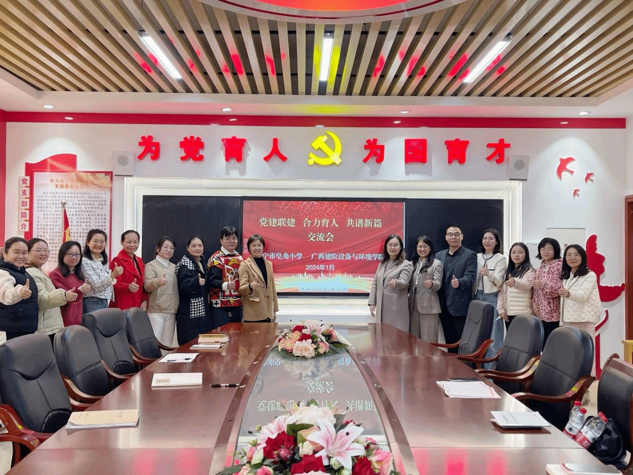 伟德国际1946源于英国1月6日讯(设备与环境学院 文/银新月 图/徐晓雪 毛森森)为开拓劳动实践教育平台,1月5日下午,设备与环境学院党总支书记侯文淑一行7人前往南宁市皂角小学开展“党建联建·合力育人·共谱新篇”主题交流会,并举行“劳动育人合作基地”挂牌仪式。会议由南宁市皂角小学校长陈华静主持,副校长、年级主任等9人到场参加。