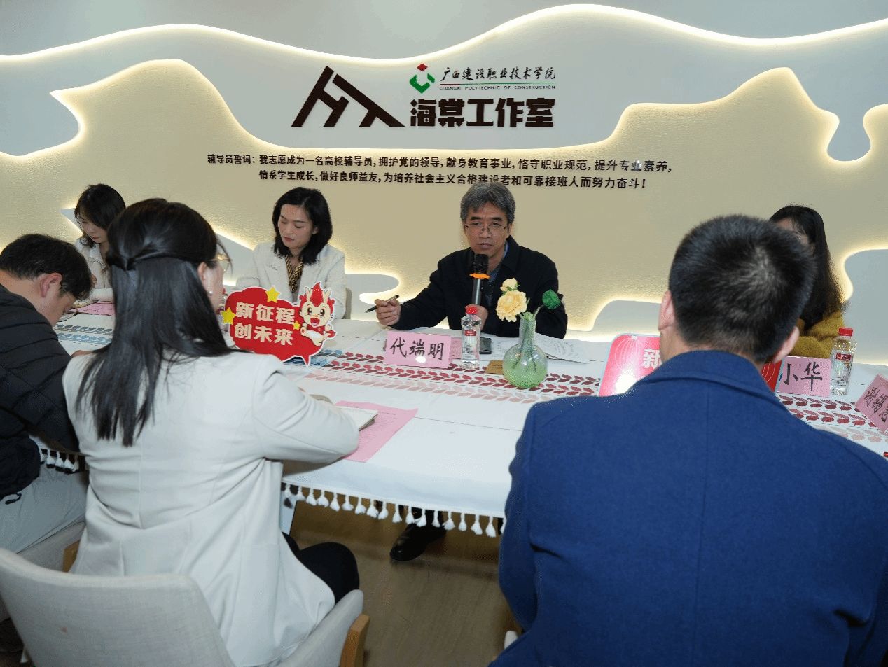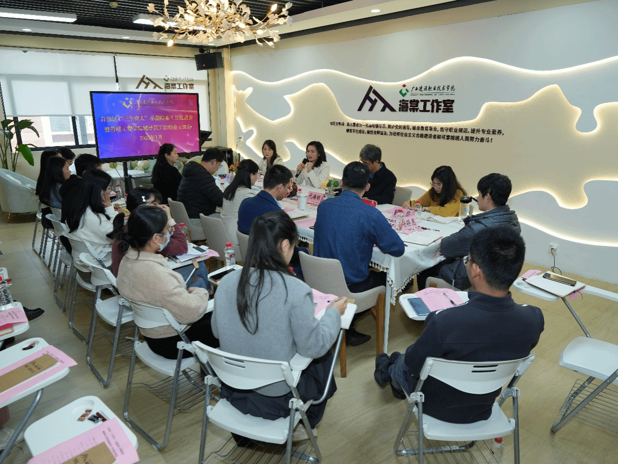 伟德国际1946源于英国1月9日讯(管理工程学院 文/宋景弘 图/黄春)1月8日,管理工程学院在海棠工作室召开自治区高校“三全育人”综合改革示范院系工作推进会暨辅导员工作交流会,学院副院长(主持工作)代端明,党总支副书记郭海棠,党务干事、学管干事和全体辅导员参加会议。会议由团总支书记封炫妃主持。