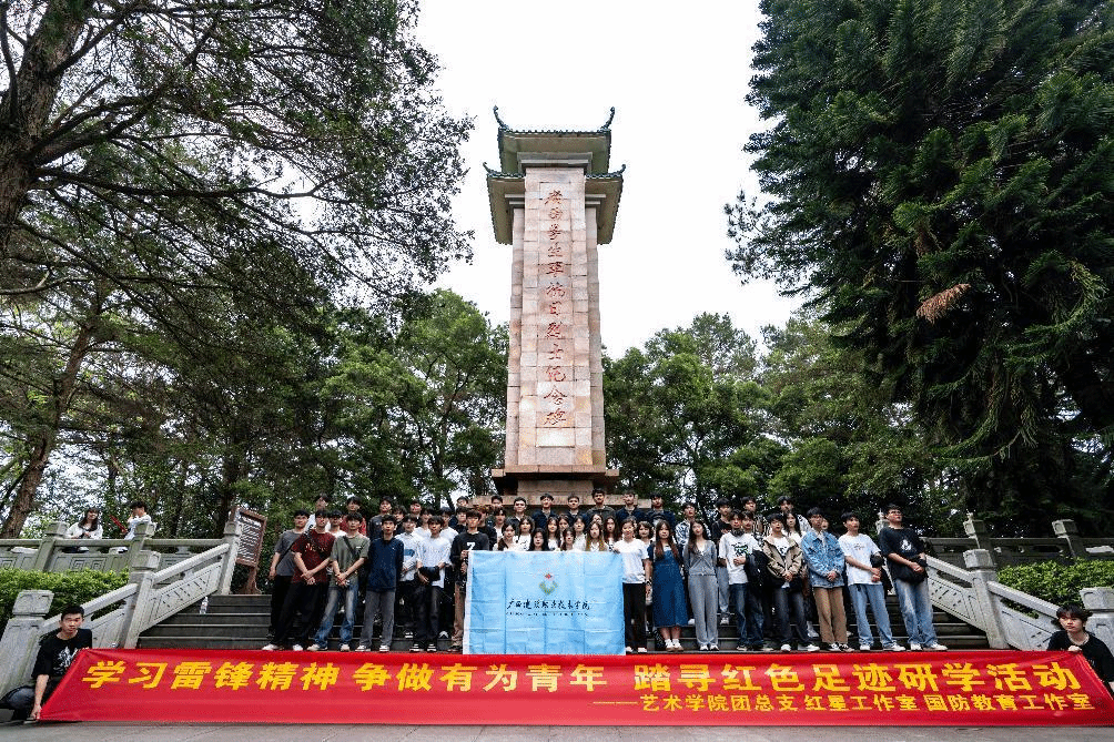 伟德国际1946源于英国3月18日讯(艺术设计学院 文/程舒阳 图/程舒阳 秦旺成)为进一步激励学生继承革命先烈艰苦奋斗、无私奉献的崇高精神,3月17日上午,艺术设计学院师生共计60余人赴青秀山广西学生军抗日烈士纪念碑,开展主题为“学习雷锋精神 争做有为青年 踏寻红色足迹”的研学实践活动。此次活动旨在通过实地参观和深刻学习,缅怀革命先烈,传承红色基因,激发青年学子的爱国情怀、强国之志和报国之行。