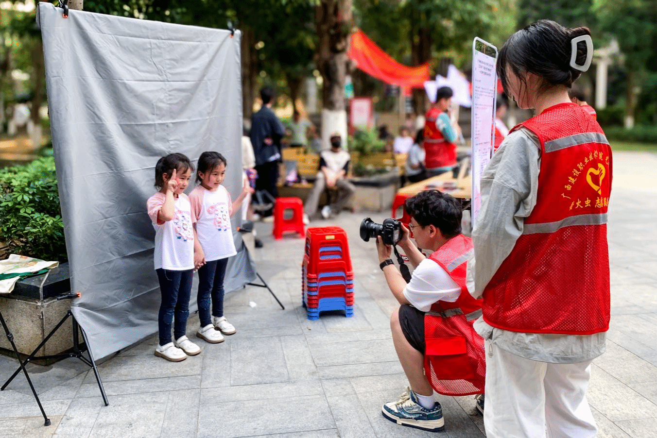 学生志愿者为社区居民提供拍摄服务