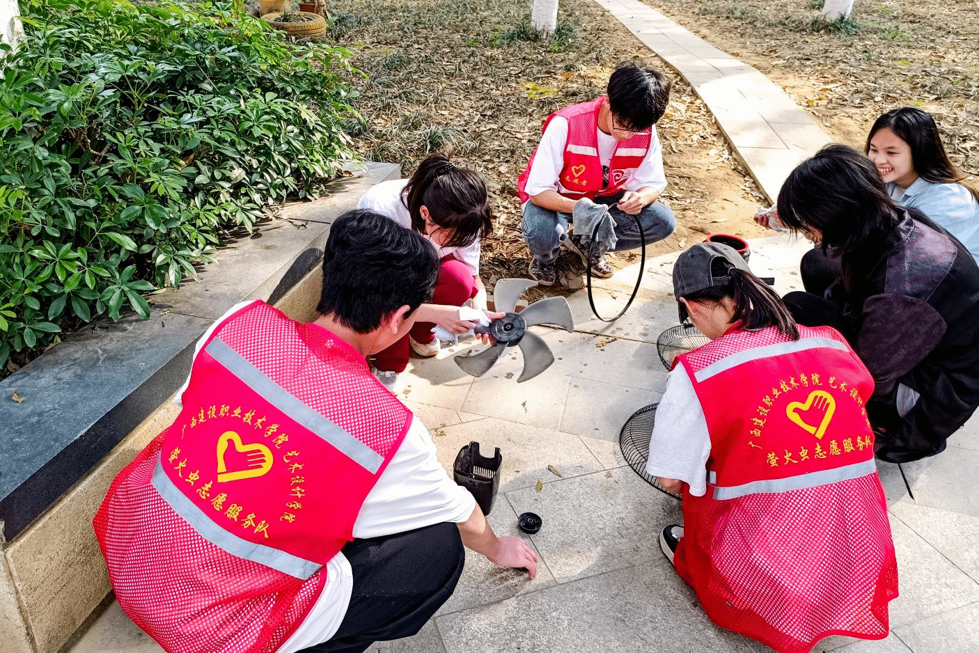 当天下午,志愿者们准时到达相贤社区,迅速投入到各项志愿服务活动中。活动包括几个部分:首先开展的是由黄佳慧同学主讲的“践行雷锋精神,传承文秀风范”的闪闪红星微宣讲。在“社区邻里守望”志愿服务活动中,志愿者们与社区居民亲切交流,提供家电清洗、家务协助、公益理发、免费拍摄证件照等服务。“法耀八桂”志愿服务活动也在如火如荼地进行。志愿者们通过发放宣传资料、一对一讲解等形式,向社区居民普及防范电信诈骗知识。他们结合生动的案例,详细讲解电信诈骗的常见手段和防范措施,提醒居民提高警惕,保护好自己的财产安全;志愿者们还提供法律咨询服务,解答居民日常生活中的法律问题,进一步增强他们的法治意识。在便民志愿服务活动中,志愿者们更是发挥了不怕脏、不怕累的精神,开展环境整治活动,清理社区内的垃圾和杂物,让居民们感受到了来自社会的关爱和温暖。