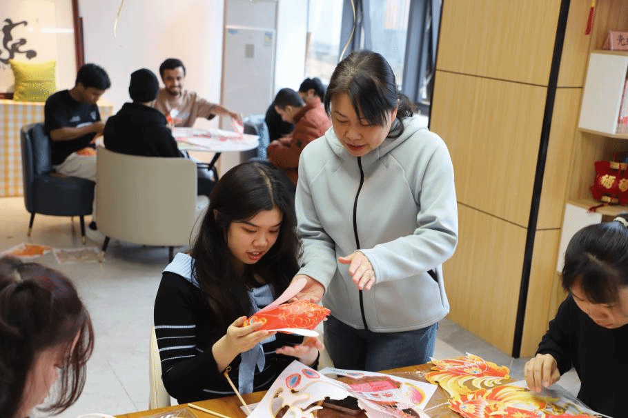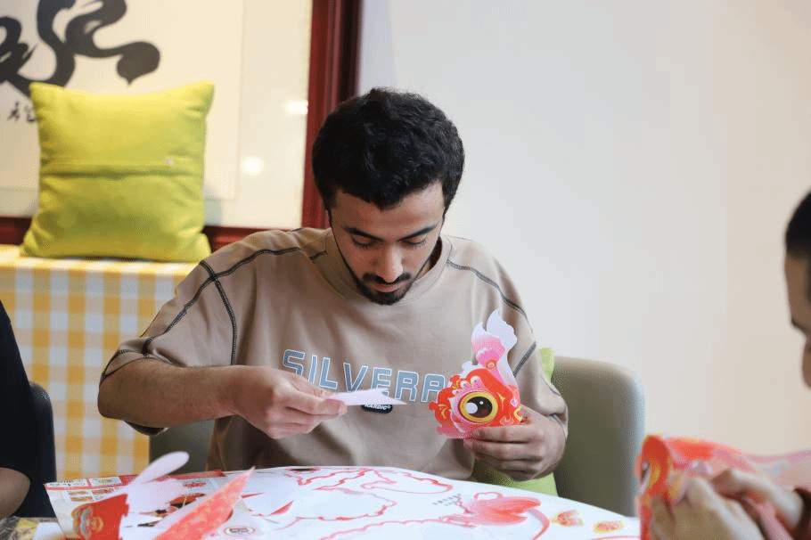 在元宵节知识讲座中,国际交流中心的谢泽芸老师给同学们介绍了元宵节的来源、传统习俗以及相关美食。通过观看舞龙舞狮、打铁花等传统节日庆典表演视频,同学们仿佛置身于热闹喧嚣的现场,深切感受到浓厚的节日氛围。随后,同学们亲手制作花灯、竞猜趣味灯谜,现场充满了欢声笑语。“这是我第一次尝试做花灯,虽然有点难,但特别有趣!”来自也门的留学生艾纳斯兴奋地分享道。
