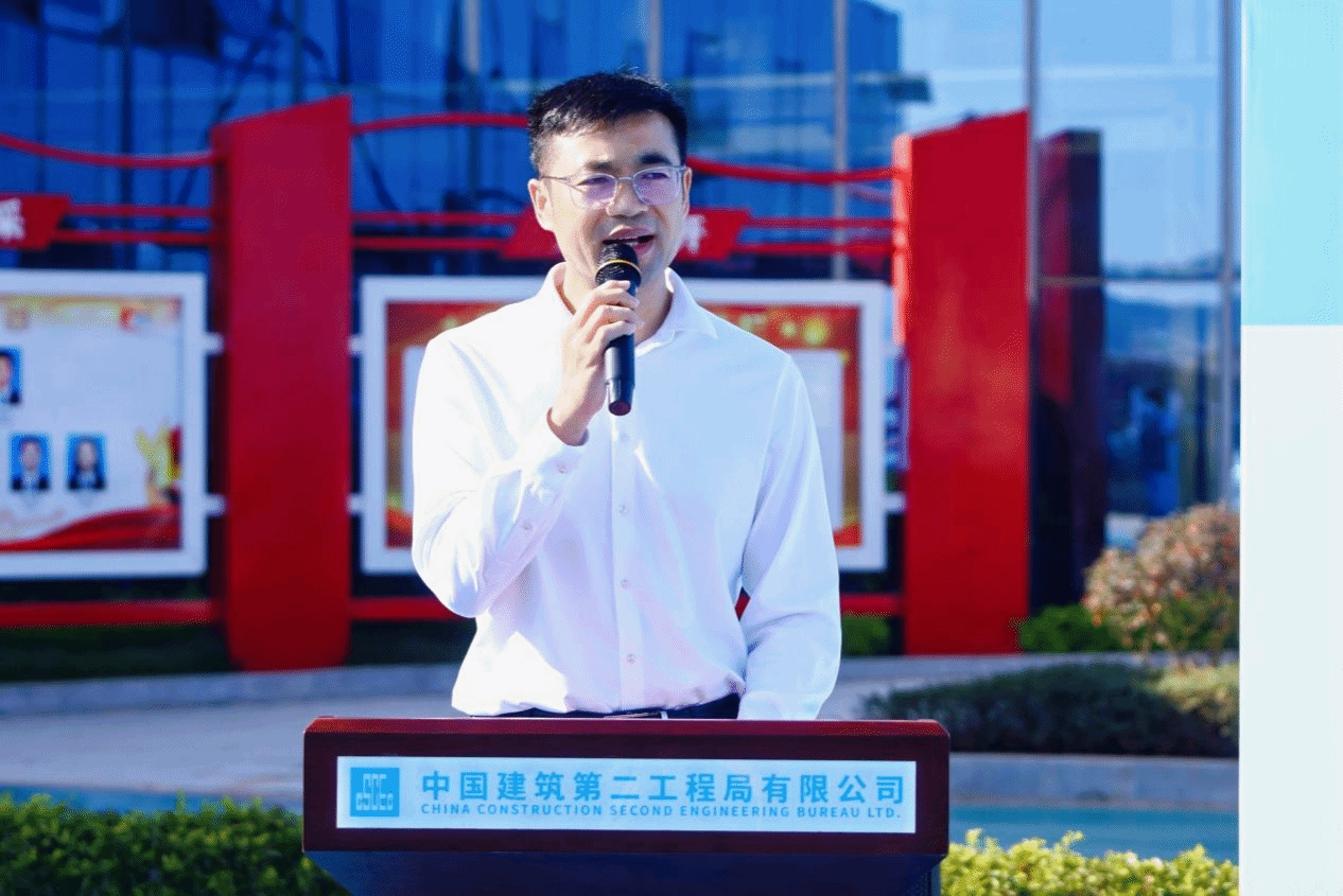 中建二局广西分公司党委副书记、工会主席赵勃在开班仪式上致辞