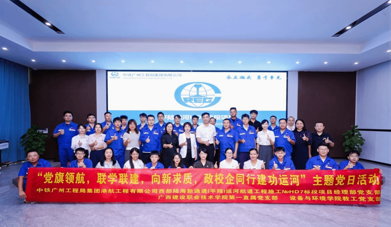 座谈会上,柏挺副校长介绍了学校办学情况及学校党建工作成效。中铁广州工程局集团港航工程有限公司平陆运河航道7标段项目书记马英向大家介绍了平陆运河航道第7标段建设的基本情况与党建工作情况。双方在会上详细讨论了党建共建的发展方向,并达成开展党旗领航,培训上门的合作意向。接下来,学校将依托优质培训资源,结合平陆运河航道第7标段的施工进展及实际情况,大力开展建筑产业工人培训,主动送教上门、服务平陆运河的建设。