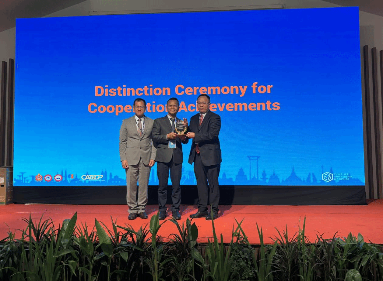 柬埔寨教育、青年和体育部国务秘书科尔冯·瓦德那(中)、东南亚教育部长组织技术教育发展区域中心主任宋亨·艾博士(左)为伟德国际官网代表付春松副校长(右)授奖