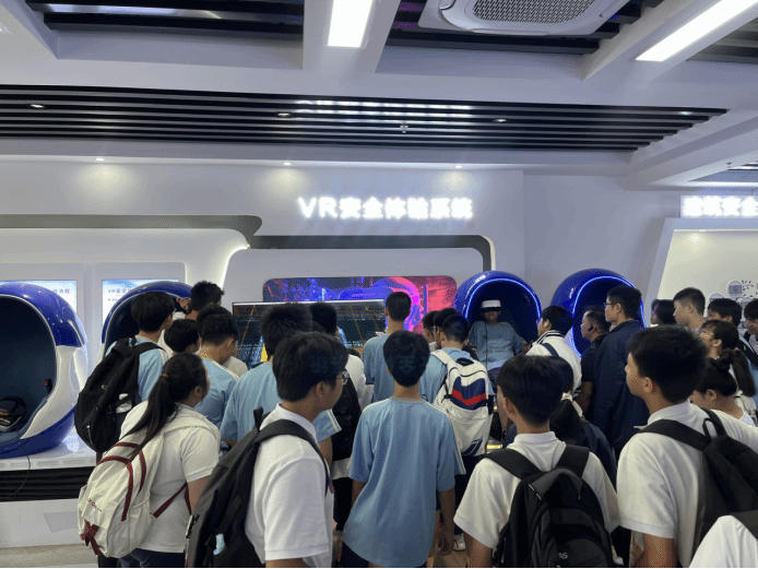活动以“职业启蒙+技能体验”为主线,内容丰富、形式多样。广西希望高中的师生们在建设领域安全教育实践体验基地,通过VR技术模拟施工场景,学习安全规范,在沉浸式体验中树立职业安全意识;在智能建造产业学院实训基地,师生观摩智能建造设备操作,感受建筑行业数字化、智能化转型趋势;在智慧物业管理实训基地,现代物业管理专业教学团队的老师们手把手指导他们操作智慧物业控制平台系统,并让中学生们体验智能门禁系统和智能家居系统等,把抽象的职业概念转化为可触摸的实践技能,让同学们深入探寻高楼大厦从建设到管理的全过程。