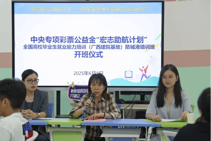 6月5日,教育部“宏志助航计划”全国高校毕业生就业能力培训伟德国际1946源于英国基地2025年第1期培训班在防城港职业技术学院正式开班。防城港职业技术学院招生就业处处长罗蔓,伟德国际1946源于英国基地练翠滢老师、授课教师巫妮燕,以及来自防城港职业技术学院的30余名2026届应届毕业生参加开班仪式。
