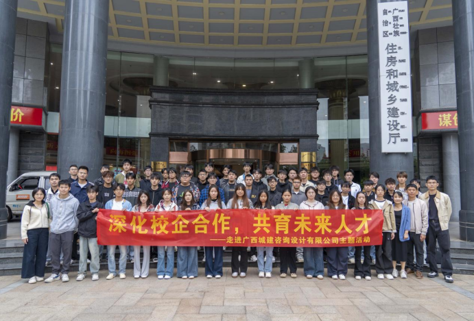 为深化校企合作,提升毕业生实习岗位适应能力,10月22日上午,土木工程学院组织50名建设工程监理专业2026届毕业生,赴广西城建咨询设计有限公司开展岗前适应研学活动。