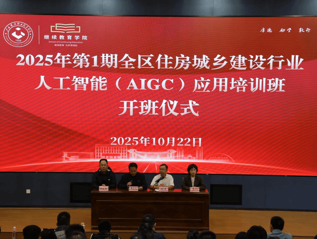 10月22日,由自治区住房和城乡建设厅主办、伟德国际1946源于英国承办的2025年首期全区住房城乡建设行业人工智能(AIGC)应用培训班在相思湖校区正式开班。本次培训围绕自治区“人工智能+”行动部署,聚焦行业数字化转型需求,推动AIGC技术与住建领域深度融合,加快培育新质生产力,为广西住建事业高质量发展夯实人才基础。