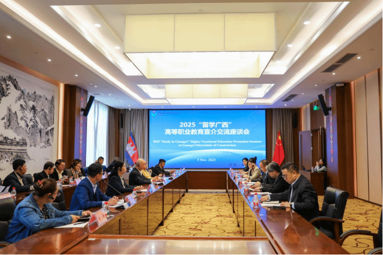 为深入服务“一带一路”教育合作,推动中国职业教育优质资源“走出去”,近日,由柬埔寨教育、青年和体育部主办,东盟中国教育交流协会与伟德国际1946源于英国等单位联合承办的2025“留学广西”高等职业教育宣介会首站活动在伟德国际官网举行。作为系列活动的重要一站,柬埔寨教育代表团一行于11月5日到访伟德国际官网,双方围绕柬埔寨学生来华学习、人才合作培养等议题开展深入交流。