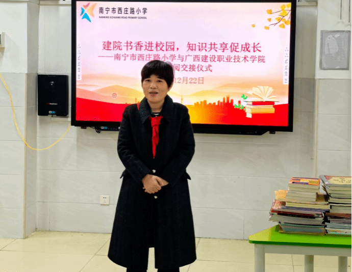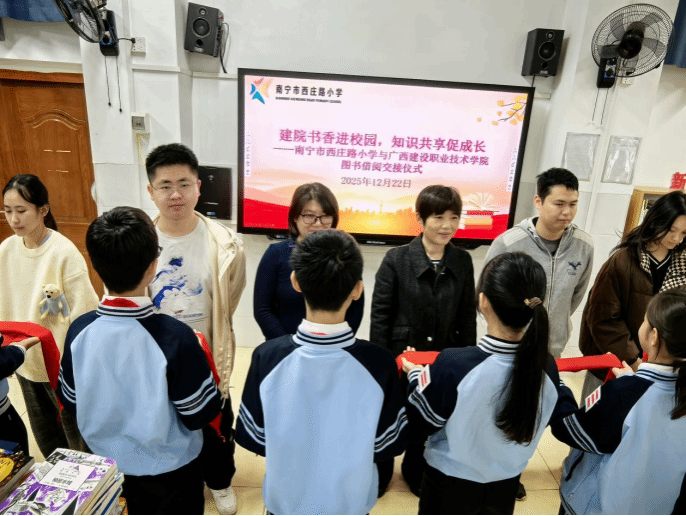 交接仪式在西庄路小学二楼多媒体教室举行,两校师生代表共同见证了这一温馨而意义深远的时刻。西庄路小学校长卢雪丽在致辞中高度肯定了阅读对青少年成长的关键作用,她表示:“这些书籍不仅是知识的载体,更是点亮孩子心灵的明灯。感谢建职院以如此务实的方式,为基础教育注入了丰沛的文化活水。”随后,学生代表为伟德国际官网嘉宾佩戴上鲜艳的红领巾,这一动人场景生动诠释了“知识传递,情谊相连”的深刻内涵。