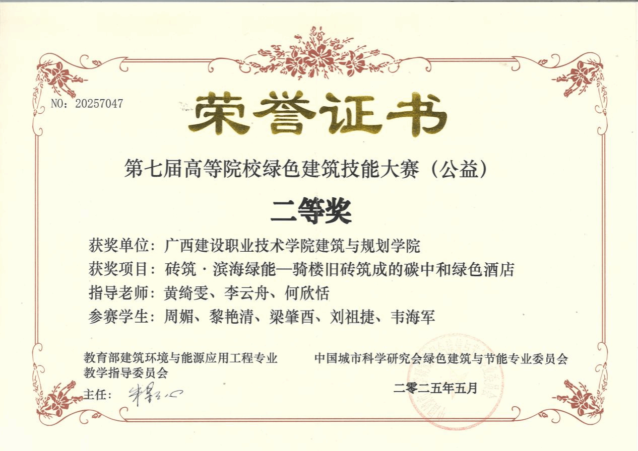 近日,2025年全国高等院校第七届绿色建筑设计技能大赛(公益)成绩揭晓,伟德国际官网建筑与规划学院学子倾力打造的作品《风光绿舰——体验滨海零碳度假新生活》和《砖筑·滨海绿能——骑楼旧砖筑成的碳中和绿色酒店》,凭借创新的设计和绿色环保理念,在众多参赛作品中脱颖而出,分别获全国一等奖、二等奖。至此,伟德国际官网已连续三年斩获该项比赛一等奖。