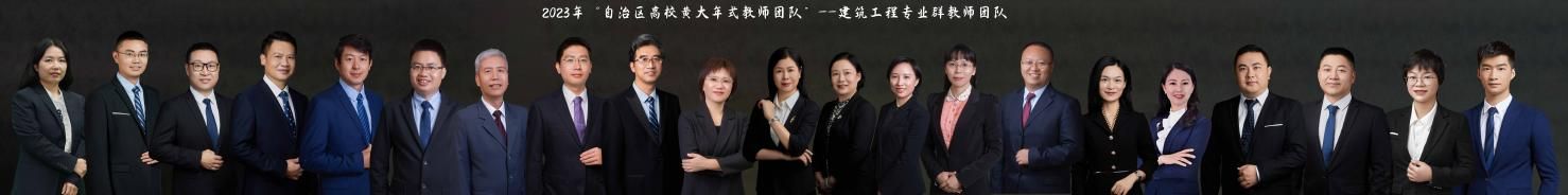 2023年自治区高校黄大年式教学团队,目前在建。建筑工程专业群教师团队有专兼职教师21人,其中正高级职称13人,博士6人。他们以德立身,以德立学,以德立教,获得全国模范教师、全国三八红旗手等国家级荣誉15人次;获国家职业教育教学成果二等奖、职业教育在线精品课程等教学成果14项;主持完成科技研发项目23项;牵头或主要参与研制国家级专业教学标准等24项;参与研制行业地方标准14部;为政行企提供技术咨询服务117项;依托柬埔寨现代工匠学院向东盟国家学生输出课程、教学方法。团队建设成果形成良好影响,吸引30多所区内外高校到访交流,建设经验获学习强国等主流媒体报道23次。