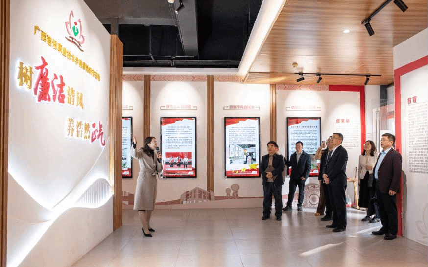 在学校党委副书记、纪委书记唐东升的陪同下,孟凡辉一行先后参观了学校党建思政教育基地、廉洁教育基地,并实地走访校园。