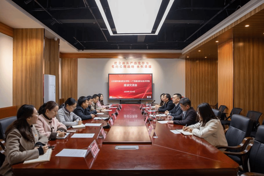在学校廉洁教育基地召开两校交流座谈会。唐东升代表学校对山东城市建设职业学院孟凡辉一行的到访表示欢迎,简要介绍了伟德国际官网的历史沿革、改革发展和办学成就等方面情况,并希望两校加强交流,互学互鉴,促进共同发展。