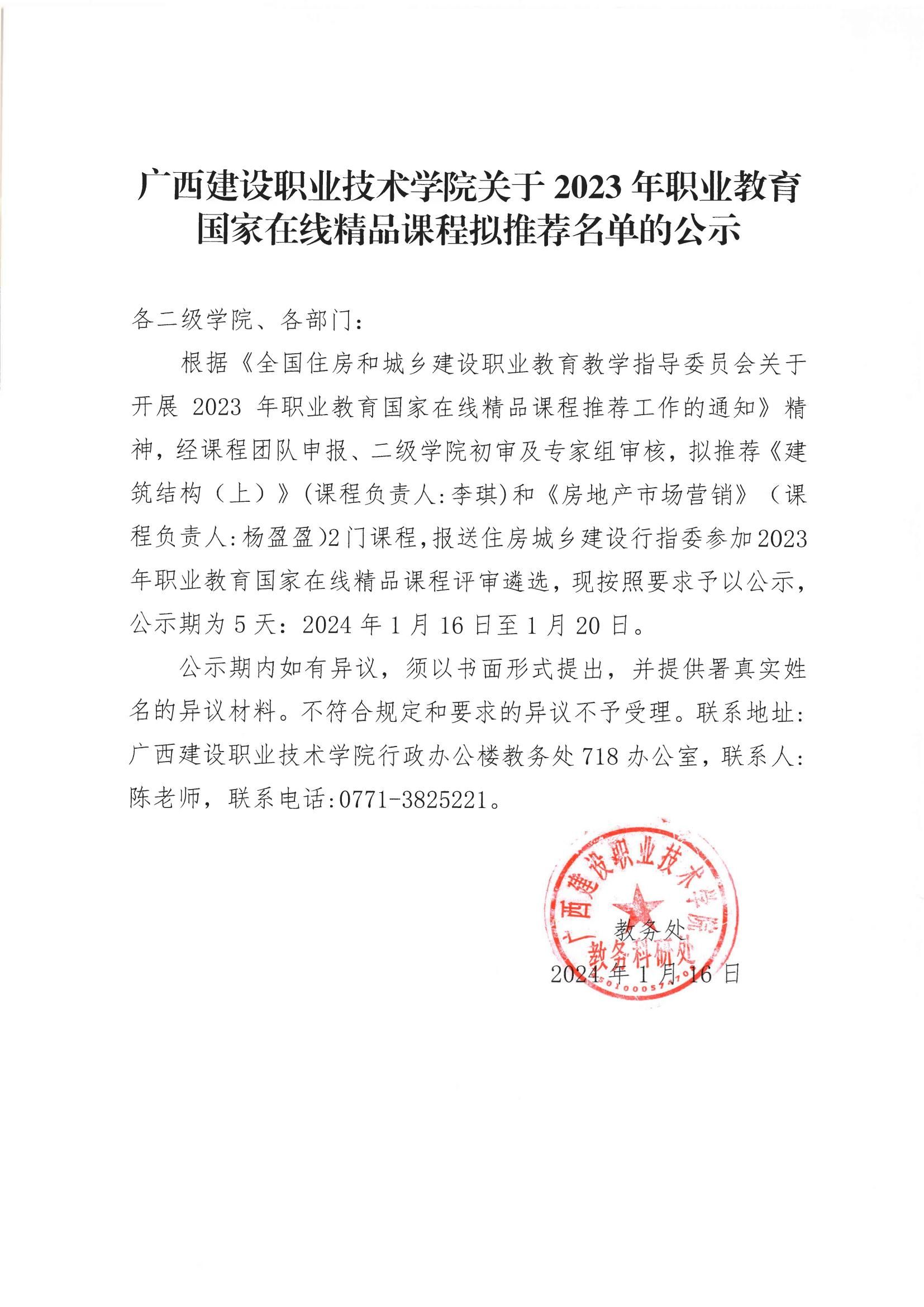 关于2023年职业教育国家在线精品课程拟推荐名单的公示(1)