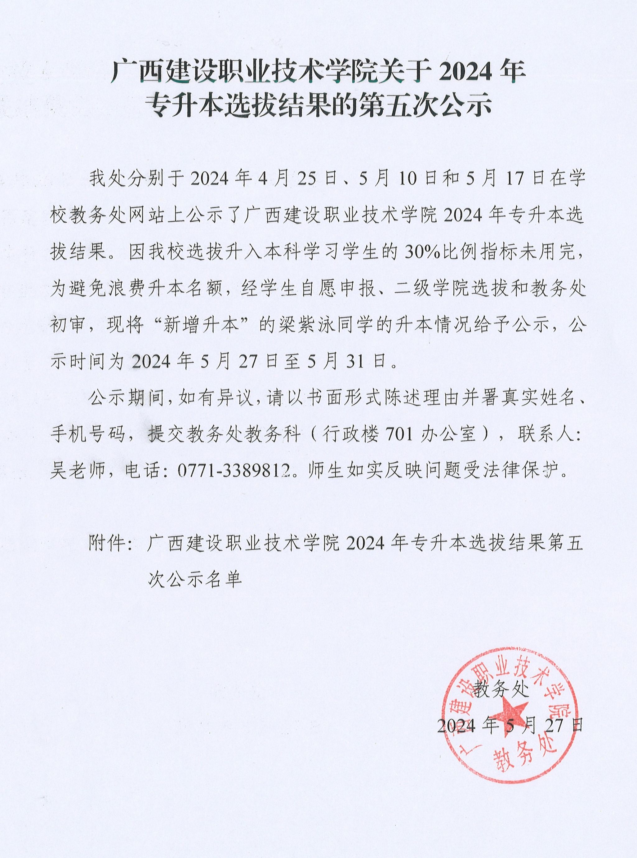 伟德国际1946源于英国2024年专升本选拔结果第五次公示名单