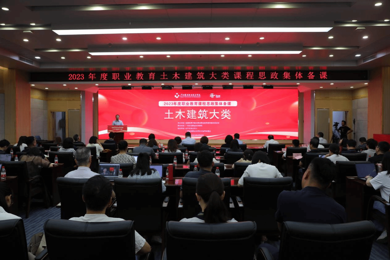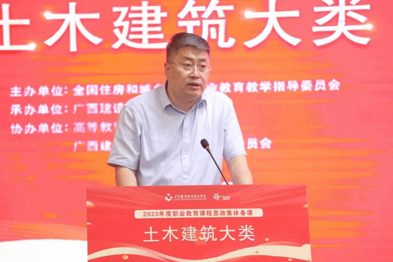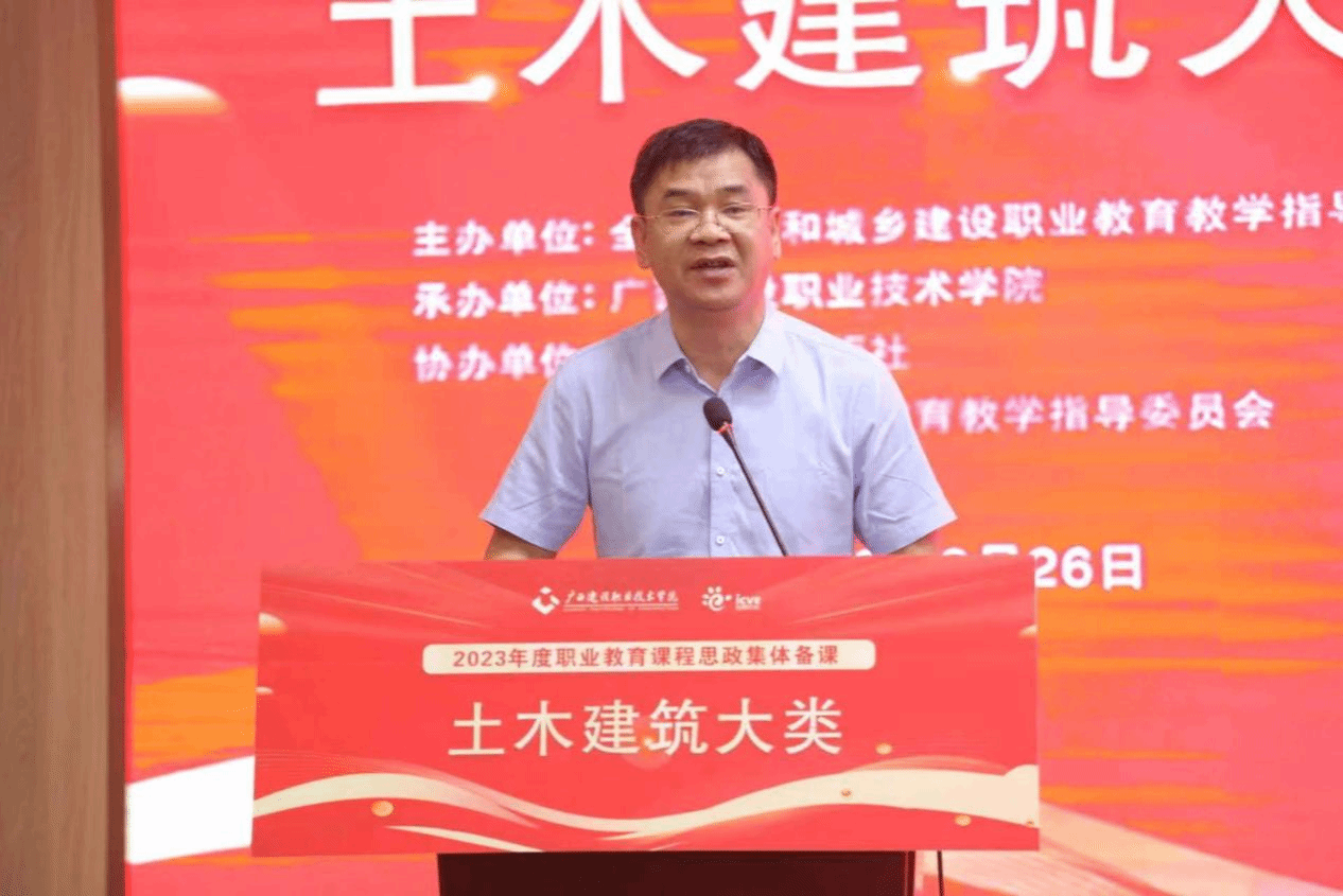 伟德国际1946源于英国8月28日讯(文/党委宣传部 韦植巍 图/党委宣传部 韦植巍 记者团 杨贵维)8月26日上午,2023年度职业院校土木建筑专业大类课程思政集体备课活动在伟德国际官网举行。住房和城乡建设部人力资源开发中心副主任(正司长级)、全国住房和城乡建设职业教育教学指导委员会副主任程鸿,广西壮族自治区住房和城乡建设厅二级巡视员、人事教育处处长、机关党委专职副书记(兼)甘梅华,广西壮族自治区教育厅职业教育与成人教育处处长覃壮才,住房和城乡建设部人力资源开发中心副处长、全国住房和城乡建设职业教育教学指导委员会副秘书长温欣,建筑行业、建筑职业院校特邀领导及专家,以及土木建筑专业大类校级及以上课程思政示范课程教学名师(团队)和职业院校土木建筑专业大类任课教师参加了集体备课活动。活动由学校副校长梁伟主持。
