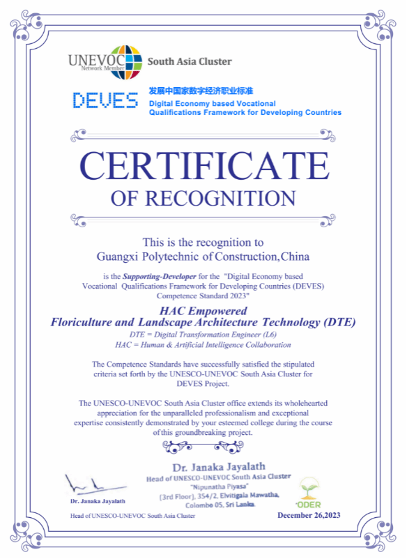 教材支撑的“花卉栽培与景观园林技术”标准获斯里兰卡发展中国家数字经济职业标准认证