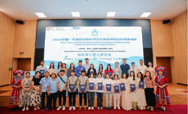 5.7 伟德国际官网主办2024中国—东盟职业院校学生水质检测职业技能邀请赛,来自中国、东盟共5个国家17支参赛队共同竞技,来自柬埔寨、印度尼西亚、老挝、泰国等东盟国家生态环境主管部门的官员观摩了比赛.