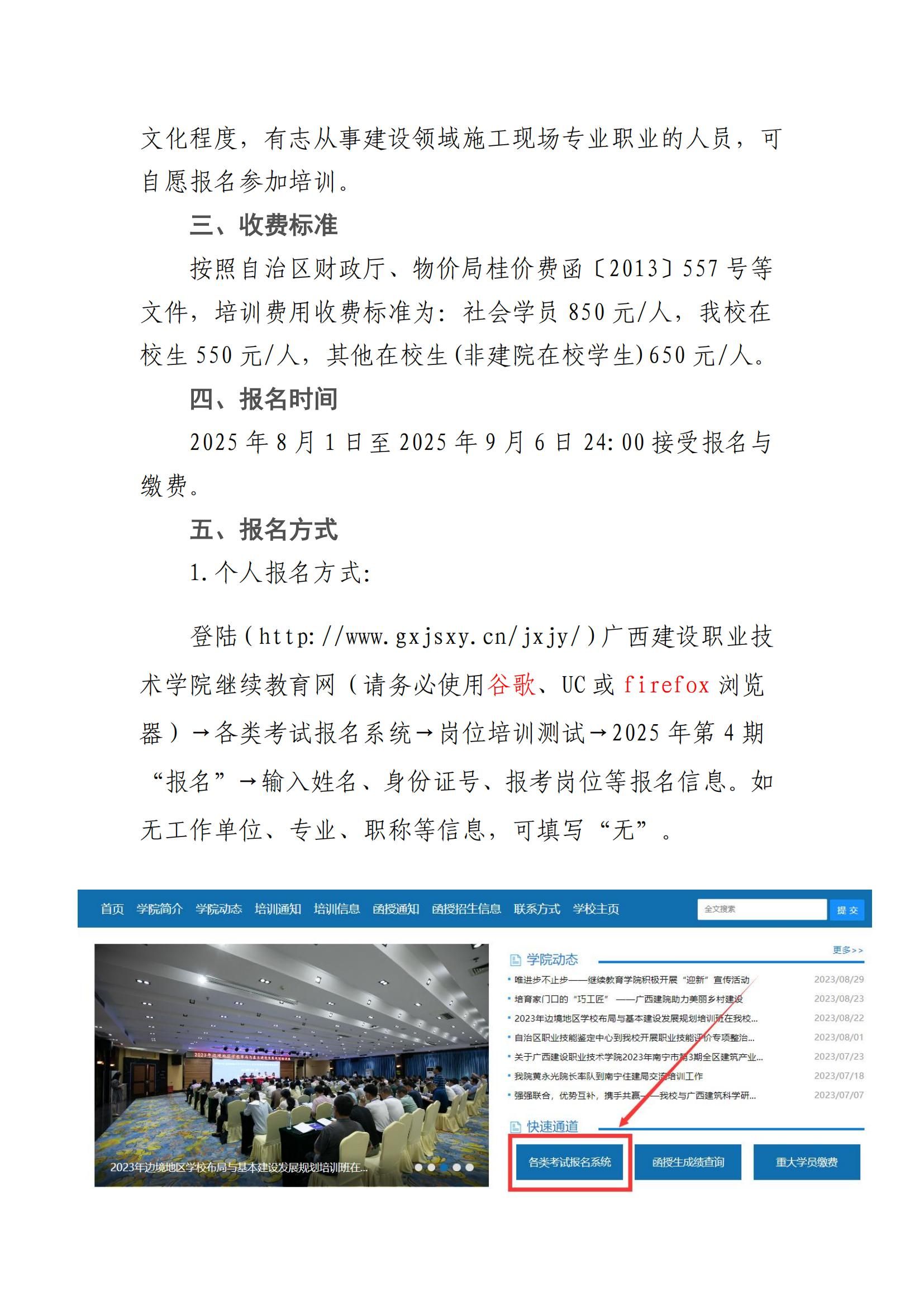 关于举办2025年第4期建设领域施工现场专业人员培训班的报名通知