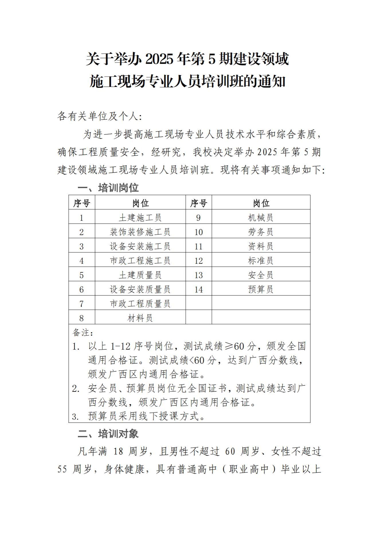关于举办2025年第5期建设领域施工现场专业人员培训班的报名通知