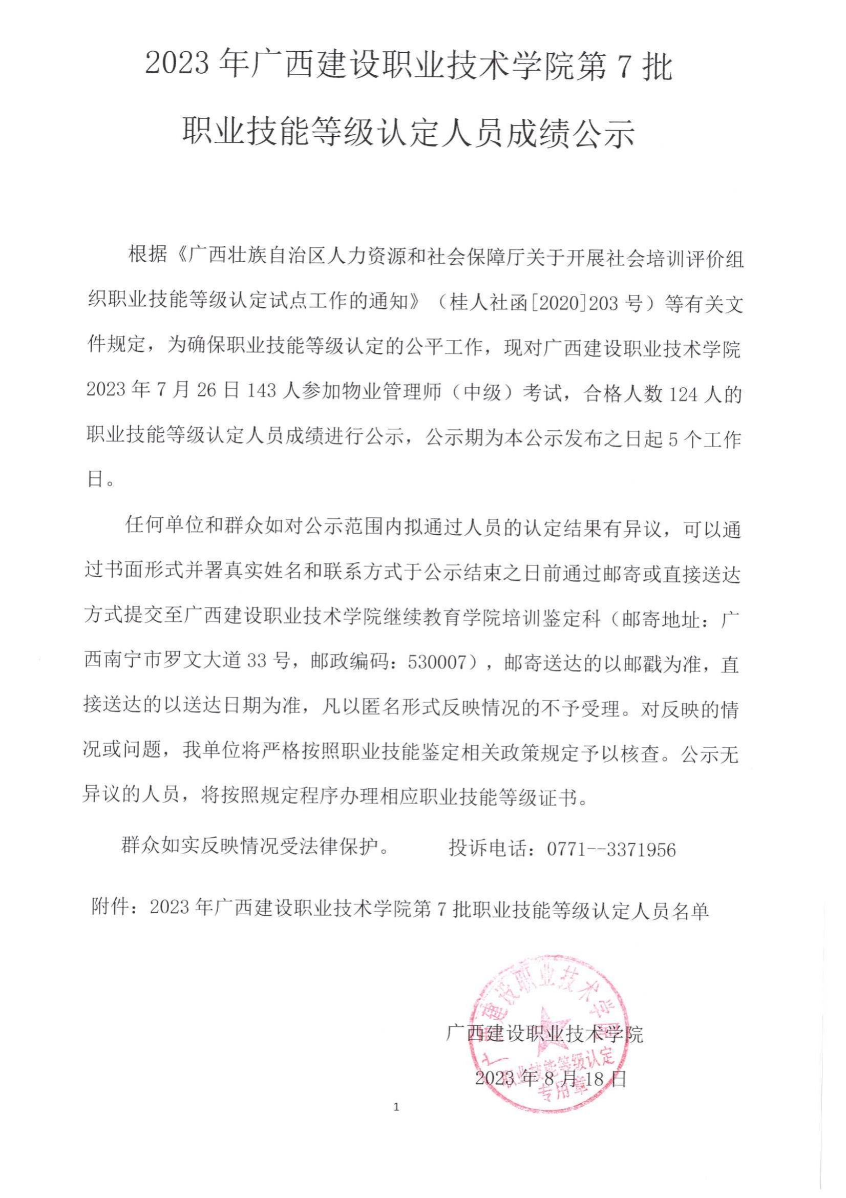 培训信息 当前位置: 首页 >> 培训信息 >> 正文 2023年伟德国际1946源于英国第7批职业技能等级认定人员成绩公示 发布日期:2023-08-21 点击: 附件【2023年伟德国际1946源于英国第7批职业技能等级认定人员成绩公示.pdf】已下载次