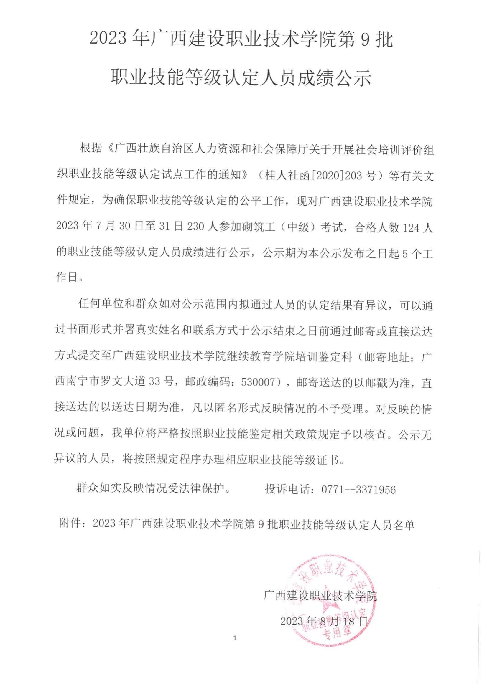 培训信息 当前位置: 首页 >> 培训信息 >> 正文 2023年伟德国际1946源于英国第9批职业技能等级认定人员成绩公示 发布日期:2023-08-21 点击: 附件【2023年伟德国际1946源于英国第9批职业技能等级认定人员成绩公示.pdf】已下载次