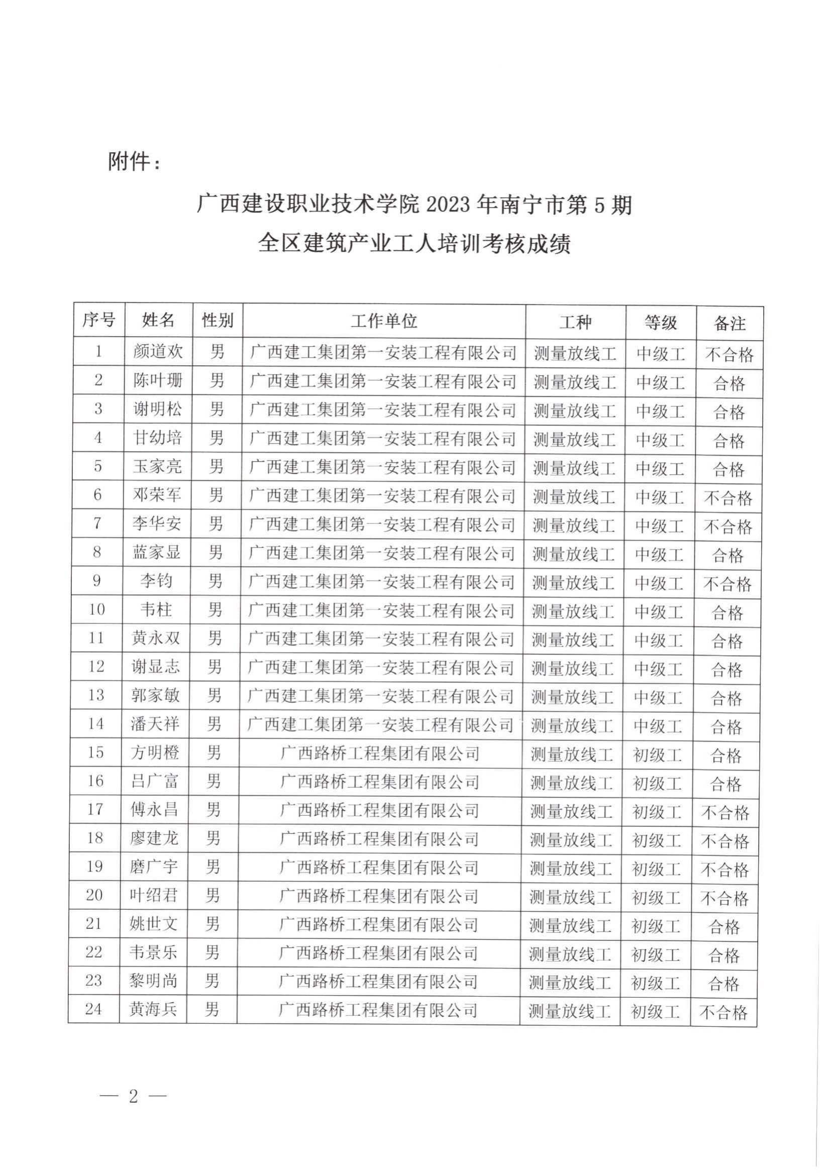 培训信息 当前位置: 首页 >> 培训信息 >> 正文 关于伟德国际1946源于英国2023年南宁市第5期全区建筑产业工人培训考核成绩的公示 发布日期:2023-08-22 点击: 附件【关于伟德国际1946源于英国2023年南宁市第5期全区建筑产业工人培训考核成绩的公示.pdf】已下载次